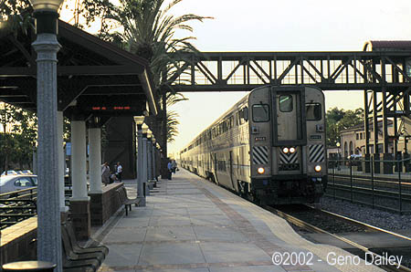 A northbound Metrolink arriving in Fullerton at 4:46pm. BACK TO TOP: