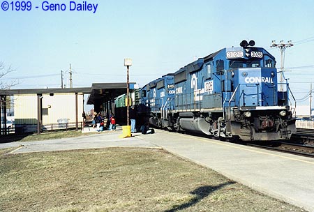 Before leaving for Syracuse, I waited on the platform at the Depew, NY Amtrak Station and photographed this "Ex-Con", renumbered Ex-Conrail GP40-2 #3026, to the best of my knowledge, this unit is former Conrail #3324. Norfolk Southern is quickly renumbering its share of Conrail's power, so get your shots while you still can before they all get renumbered!!! |