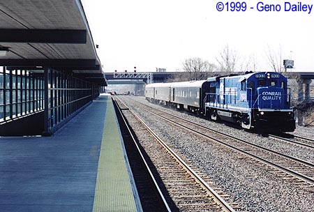 I stayed at the Terminal for about an hour and photographed the Conrail Track Geometry Train, with B23-7 #1933 leading the eastbound on Track #1 at 11:59am. Unfortunately, Mondays are slow days on the Chicago Line through this area, as I would come to find out. But I did manage to get some action photographed at a popular trainwatching spot in nearby Solvay, New York, to see that, Click in the table below... |