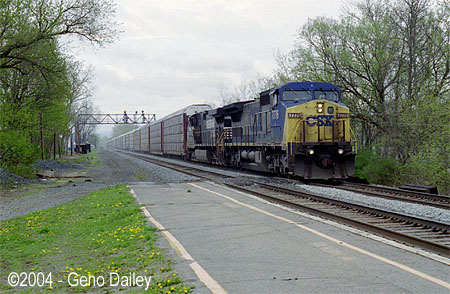 Westbound CSX Train Q-271 with C40-8W #7776 followed by an NS unit pass by Amsterdam at 2:28pm.