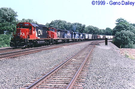 Leading Train SECN is Canadian National SD40-2 #5374 on Track #1 at 11:23am. |
