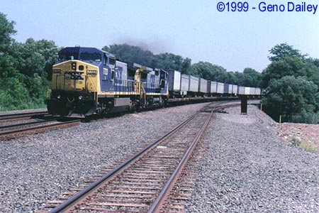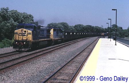 Solid CSX Power with C40-8W #7723 leading can be seen on Train TV-99 at 11:45am on Track #2.
