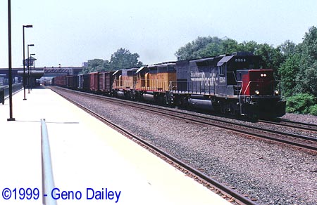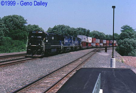 Talk about a day full of surprises, this eastbound manifest went by at 12:39 on Track #1 with a Southern Pacific SD45T-2 Tunnel Motor #8384. Union Pacific as well as some Southern Pacific power has become a very common site on the Chicago Line as CSX has leased several Union Pacific units for the first few months after the Conrail Transaction.