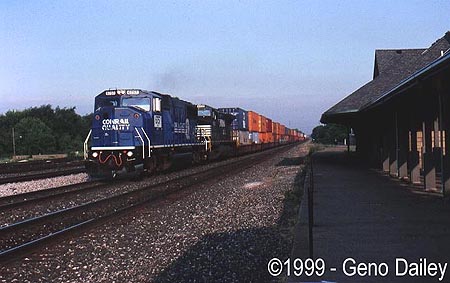 The last train I would end up seeing at Sandusky was this Eastbound TV train with a pair of renumbered Dash-8's on track #2 at 8:50am. |