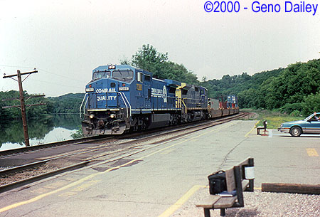 Train Q-387 is next with SD40-2 #8248 leading a Lease Unit on Track #2 at 12:02pm. At this point, we knew that Track #1 was out of service due to trackwork just West of here in Fonda, NY.