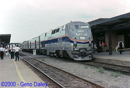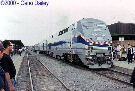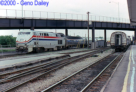 Now with its power and a cafe car connected, Train #448 prepares to leave Albany with Train #262 peaking from behind.