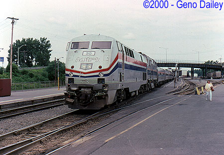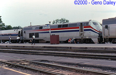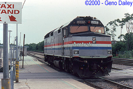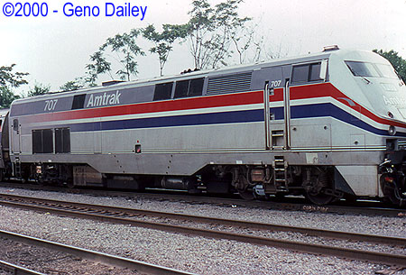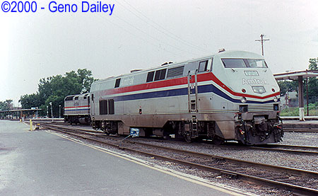 Running light is F40PHR #247 sporting a "reversed" Amtrak logo on the nose in white.