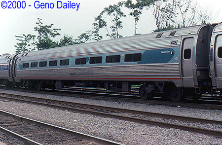 One of the last Heritage Coaches in service, Coach #7606 marks up the end of an Empire Service Train.