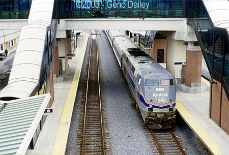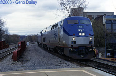 I got my wake-up call at 9:00am, what was described as an “Official Tom Bodette Motel 6 Wake-Up Call”, goofy but it serves the purpose. I headed over to a nearby Burger King for a quick breakfast, then ran over to get some luggage locks before getting back to the hotel to check out. I left the hotel about 1 hour before my bus was scheduled to leave for Albany. I rode another Red Line Subway back to Boston-South Station and arrived about 20 minutes before my bus was to leave. I headed over to the Amtrak Ticket Counter where I found a handful of other passengers scheduled to take this bus. The ticket agent made a boarding call and an Amtrak crew member directed us to the buses which were parked on the street. Crystal Transport provided the 2 buses and about 6 Amtrak Crew members including the Lead Service Attendant, Conductor, Assistant Conductor and car hosts greeted passengers and passed out Boxed Lunches to everyone as well as cans of pop. A car host had remembered me from yesterday as he was on 48. The lunch I had consisted of a Turkey & Swiss Sandwich, a bag of Ruffles Potato Chips and a little package of Oreo Cookies. I had a Diet Pepsi to drink. This was nice of Amtrak since everyone got a free lunch, not just Sleeper Car passengers. The bus driver took my 2 suitcases and placed them under the bus, I kept my camera bag with me along with my umbrella. The conductor came by and took our tickets and we departed Boston at 11:55am. We took a route that had us ride through part of Boston’s “Big Dig” a huge underground tunnel. Each bus would end up taking a slightly different route. I happened to be on the bus that would only stop in Pittsfield, MA before going to Albany. The other bus made the rest of the intermediate stops on the route. We took the Massachusetts Turnpike (Interstate 90) practically the whole way to Pittsfield before getting off there. Both buses had to follow the train’s schedule so by the time we arrived into Pittsfield, it was 2:25pm, and we had to stay there until 3:24pm. A good number of passengers got off the bus to smoke, while myself and a passenger from Michigan walked up to some street in Pittsfield in search of a regular bathroom instead of the “restroom in a bucket” on the bus! We found a Bagel Shop and went there, used the bathroom and I bought a bottle of Tropicana Juice and a Diet Pepsi. I walked back to the bus, and took a few slides. A new station is being built in Pittsfield to serve Amtrak as well as Greyhound Bus. I hope that Amtrak is considering expanding service on this line in the future since the new station looks to be very large for such a small city as Pittsfield. Promptly at 3:24pm, we reboarded the bus and left Pittsfield. We meandered our way up a bunch of back roads and eventually got back out to Interstate 90 at the New York/Massachusetts border. Our next and final stop on this bus was Albany-Rensselaer. We arrived there some 20 minutes early at 4:30pm. I picked up my luggage and headed inside the station since we wouldn’t be leaving until 6:05pm. I had Amtrak hold my 2 suitcases and umbrella so I could get out and do some railfanning. I knew nobody was allowed on the platforms so I settled for overhead views only from the adjoining street overpass, as well as the overhead corridor that has large picture windows good for photography. I noticed Train #449 pulling out of the Rensselaer Yard and Shops and backing up to the platform on the Main Track. Shortly after, Train #49 later arrived with P32AC-DM #705 pulling it. Train #49 would pull into the #2 Track platform where its passengers could get off and take a breather. A boarding call for passengers on Train #449 was made saying we could board the train at this time. I got all my bags together and took the escalator to the platform and quickly got a slide of Train #49 before boarding my coach, Amfleet II #25008. The consist for tonight’s train is listed at the bottom of this page. We left Albany-Rensselaer at around 6:20pm, I had a chat with a couple passengers, one who had a 3 week old baby girl with her (amazing, it took me 13 years to get my first train ride and it takes this kid 13 days!) We passed by the Rensselaer Shops where there was 2 Turboliner Train Sets along with 1 F40, 1 Coach, a couple P32AC-DM’s and a few MP15 Switchers. This would be my shortest leg of the trip as I would be getting off at the next stop in Schenectady. The Dining Car Host came into our coach and informed everyone of what was available for dinner. The conductor came by and informed us of where to get off in Schenectady. I got all my stuff together and we arrived in Schenectady at around 6:55pm. I took a few slides of the train while stopped in Schenectady before I headed inside the station. Rich showed up along with our friend Armand and we decided to head to Rich’s where I would be staying tonight, then the 3 of us went to Canali’s Restaurant in Rotterdam. After dinner, we went back to Rich’s and watched a couple railroad videos, before Armand left and I set up my computer to get online, I then went to bed and so ends Day 2 of the trip. |