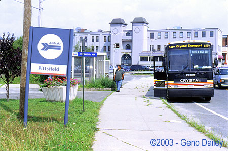 The above example happened on this trip. Back on July 9th, 2003 I got a nasty phone call (Actually, Amtrak was quite friendly and professional on the phone, the call was only nasty because it effected my trip!) stating that due to trackwork, Train #449 would be replaced by a bus. The bus would follow the Train's schedule and be symboled #3449. It was due to leave Boston at 11:50am and arrive in Albany at 4:50pm where the train would pick us up and continue on its regular route West. Putting all kidding aside, to Amtrak's credit, they at least had enough decency to call me and inform me about this ahead of time instead of "surprising me" once I was in the middle of my trip. I tried my hardest not to let it bother me as I really had planned to ride this train to cover trackage I had yet to cover otherwise (I haven't rode on the B&A between Boston and Springfield yet!) Below is a brief portion of the travelogue describing the events of our great (really really boring) ride on the Massachusetts Turnpike (Oh Great Interstate 90, here we come!) |
