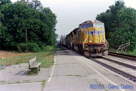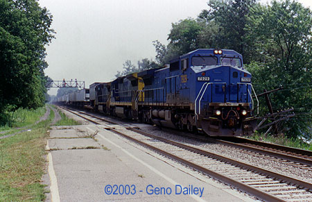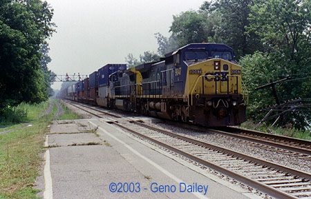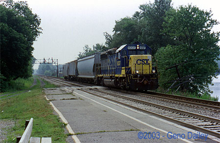 ![]() This Local Freight came by with GP40-2 #6237 for power at 11:23am. ![]() BNSF C44-9W #5432 leads Train Q-380 (Conrail Train IHSE) at 11:25am. BNSF Power is common on this train. ![]() At 11:34am, Amtrak Train #48, the Eastbound Lake Shore Limited passes through doing about 70mph with P42DC #188 for power followed by 184. ![]() C44-9W #9047 leads Train Q-157 through Amsterdam at 11:51am. ![]() C40-8W #7924, a former LMS unit leads this Westbound Autorack train at 12:12pm. ![]() AC6000CW #656 leads this Eastbound Manifest at 12:17pm. ![]() Next up is this Eastbound van train with AC6000CW #608 for power at 12:52pm. ![]() C40-8W #7362 (Conrail #6201) leads this Westbound van train at 1:07pm. ![]() CSX C40-8W #7929, another former LMS Lease Unit leads Train Q-169 (Conrail Train TV-BN) on Track #2 at 1:25pm. ![]() At 2:33pm, Amtrak Train #287 arrives into Amsterdam with P32AC-DM #717 for power. ![]() Lease Unit HLCX #6515, an SD40-M3 with an SDP45 body shell leads this Westbound Autorack train at 2:55pm. ![]() CSX C40-8W #7380 (Conrail #6244) passes through Amsterdam with Train Q-119 (Conrail Train TV-9) at 3:07pm. ![]() At 3:35pm, Amtrak Train #286 arrived with P32AC-DM #706 for power. ![]() SD70MAC #747 leads Train Q-156 (Conrail Train TV-302) at 4:09pm. ![]() Union Pacific SD70M #4962 leads Train Q-151 (Conrail Train TV-151) at 5:11pm. |