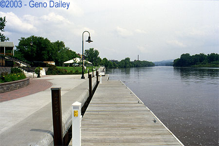 ![]() I discovered this park while looking for different spots in Amsterdam to railfan, and what a park it is! This first view is from an overhead platform that comes from the Riverfront Shopping Center. You have to walk over a long bridge from the shopping center over the mainline to get here, providing this view plus the overhead views of the mainline. ![]() The Riverlink Cafe is a small restaurant that serves a decent menu of food at the park. It is open during the summer months. ![]() Looking East on the floating boat dock at the park. |