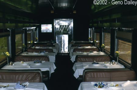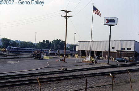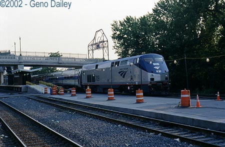 To start the day, I arrived at the Amtrak Buffalo-Depew Station as always a little early, though because the train was running over an hour and a half late, I arrived around 7:00am. This train normally arrives at 6:48am, but due to the late arrival of the train, I came a little later as the light before then wasn't really suitable for train photography anyway. After unloading my 2 bags from the car, (Thanks again Dad for driving me here today!), I ran inside, picked up a quick Diet Pepsi for $1.25 from the pop machine in the station, and headed out to the platform. I was told by another passenger that now the train was due to arrive at 8:30am, which would make it almost 2 hours late in arriving and could possibly put it in the way of Train #286, an Empire Service Train that was due to arrive in Depew at 8:55am. I packed 9 rolls of film and 10 Mini Discs to listen to on this trip though I would end up hardly using my MiniDisc Player at all as the events of this trip would unfold and I would have most of my attention given to my scanner to hear what was happening. While on the platform, I had a nice conversation with a guy from Australia who was on vacation, touring America and was gonna ride Train #286 to New York City. Because our train was so late, there were people on the platform for both trains which may have created some confusion as #286 was otherwise running on time. I was actually hoping that #286 would arrive before #48, our train, since then I would have a chance to photograph it (the railfan in me I tell ya!!) but at 8:23am, Amtrak Train #48, The Lake Shore Limited arrived in Depew with P42DC #159 on the lead, 1 hour and 35 minutes late. In Buffalo, the Lake Shore needs to not only pick up passengers but pick up mail as well. Amtrak puts 8 minutes in the timetable for this to happen, today, it would take 33 minutes. I boarded in the first of 2 coaches in the Boston Section of the train, since I would be riding to Springfield. Amtrak will place most anyone not getting off in New York or Croton-Harmon, in the Boston Section to fill up any empty seats in that part of the train. I boarded Amfleet II Coach #25025, a nicely refurbished coach with blue seats, AC outlets and digital reader boards on each end of the car showing where the Cafe Car and bathrooms are. I was seated in an aisle seat with a family of 3 traveling from Tacoma, Washington to New Haven, Connecticut to visit family. I was told by these people that their train, the Empire Builder, ran into HEP problems somewhere near Minneapolis which delayed its arrival into Chicago. Since The Lake Shore Limited is a guaranteed connection with the Empire Builder, it couldn't leave until after the Empire arrived. This same situation happened to me last February as I was coming home from California and our train was stuck in Chicago waiting for the California Zephyr, another guaranteed connection, to arrive. I also heard some chatter that the air conditioner in the Boston Section's Viewliner had quit working. This was fixed for now while we were in Buffalo. Shortly after departing Buffalo, I headed to the Dining Car, a Heritage Diner which appeared to be unrefurbished as of recently as it still had a rather dark brown interior and the older style lighting. I noticed Amtrak's new National Menu which is now in use on all long-distance trains that have a dining car. Personally, I think this is a bad idea because each train serves a different part of the country with different sites to see along the way and I feel the food served onboard should reflect that. My hope is that Amtrak President David Gunn will change this, we'll see what happens. I had the Pancakes & Sausage for Breakfast, the food tasted generally good with no major problems though the glass I had my Diet Pepsi in was a little spotty, not that it bothered me too much but I'm sure there will be someone who will wonder why they don't use Cascade! After breakfast, I asked the conductor if it would be alright to photograph the dining car interior after it closed. I was told to come back later and there should be no problem, there wasn't, and so I took a couple slides of it later on. All this time, we had been riding in front of Train #286 so finally at CP-373, they stopped us to let him pass since his station work would take up much less time than we would due to the smaller size of a train like #286. We arrived in Rochester and left at 10:16am about 2 hours, 6 minutes late. At CP-335 in Lyons, NY we had to stop once again to let CSX Trains L-161 and Q-439 pass us. There was a decent amount of trackwork going on in this part of New York so that helped drag us further behind schedule. Due to more trackwork, we arrived even later into Syracuse and departed at 12:24pm, now 2 hours and 56 minutes late. We started moving again but would end up being forced into probably the Grandfather of all speed restrictions just ahead... Due to the recent derailment of Amtrak's Capitol Limited in Kensington, Maryland just 2 weeks before, CSX imposed a 40mph speed restriction in effect from 1:00pm to 9:00pm on any day the outside temperature reaches 90 degrees or higher, as rail expansion under the extreme heat was found to be a contributing factor in that derailment. Until 1:00pm, we had been running close to Track Speed with the exception of smaller restrictions due to trackwork or to let other trains pass. As we passed the Whitesboro, NY Detector, we were now in the restriction and were doing 37mph. This unfortunately would be about as fast as we would go for the rest of this trip. Let me repeat that this speed restriction was imposed by CSX, the Freight Railroad that owns the tracks and because of this, Amtrak must follow it, I do not place blame on Amtrak for this in any way. Next stop was Utica where we left at 1:56pm about 3 hours and 10 minutes late. The dining car now opened for lunch service. As I try to do on most any train with a dining car, I had my lunch there, I ordered the Grill