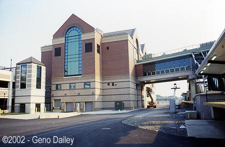 ![]() Amtrak Train #48 - The Lake Shore Limited arrives into Buffalo-Depew Station with P42DC #159 on the lead. The train arrived 1 hour and 35 minutes late. The freight train on the adjacent track is headed into Frontier Yard a couple miles West of here. ![]() Amfleet II Coach #25025, my coach for the entire trip. This was the second of the 2 Boston Section coaches in the train. ![]() An interior view of Heritage Diner #8521. This car has 12 tables that seat 4 people each and is open for meals at the appropriate meal times on the trip. ![]() I believe this is Fonda, New York. If I'm wrong, someone please let me know via E-mail at DJTrain877@hotmail.com. ![]() Amsterdam, New York, a popular railfanning destination, pictured here is the small Amtrak Station in town. The Lake Shore Limited doesn't make a regular stop here unless a connecting passenger has missed their connection due to a late train's arrival. ![]() The Mohawk River bridge near Schenectady, New York. We would be arriving there shortly after this slide was taken. ![]() The train parked ahead of us is Empire Service Train #294 on its way to New York City from Saratoga Springs. We would have to sit here until Train #281 passed us on the adjacent track. Just ahead of Train #294, the line goes down to Single Track warranting us to have to wait here. This was all due to the long delays from the speed restrictions in effect. ![]() I know the old Arlo Guthrie Song "City Of New Orleans (Good Morning America How Are Ya)" mentions "The Graveyards of Rusted Automobiles", and here is where I think he got his inspiration for those lyrics! ![]() Part of the Albany Skyline as seen from the railroad bridge over the mighty Hudson River around afternoon drive time. ![]() Our train rounding the bend as we pull into Albany-Rensselaer Station ahead. ![]() Amtrak's Rensselaer Maintenance and Yard Facilities. Seen today is one set of badly Acela Painted Turboliners, along with 1 FL-9 and a privately owned Slumbercoach sitting outside the shop. ![]() Amtrak Train #291 arriving in Albany with one of the first P32AC-DM's painted up in the new Acela Paint Scheme. Unit #709 leads this train where it will be done for the day after all passengers detrain. ![]() The NEW Albany-Rensselaer Amtrak/CDTA Station, almost ready to open... ![]() Amtrak Train #448, the Lake Shore Limited - Boston Section pulls up to the Albany-Rensselaer Station with a 3rd locomotive added to its consist, now leading is P40DC #810. |