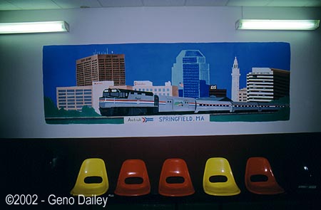 Inside the first floor of the station is this painting in the lower level waiting room. The painting looks to be something from the Mid-1980's as it shows a building to the right labeled "Bank Of Boston" which I believe is now Fleet Bank.