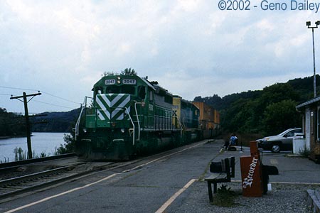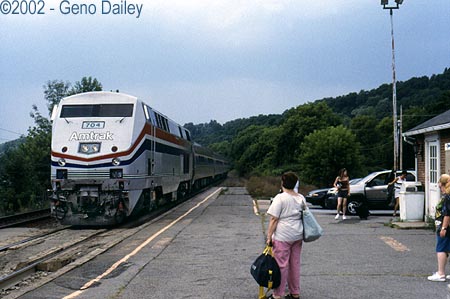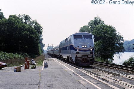 The first train I would see today was Amtrak Train #63 - The Maple Leaf bound for Toronto. This train was the long holdout in the Northeast that sported an F40 for power as late as the Fall of 2001 before Via Rail Canada finally started using GE P42's. Today's train has P40DC #820 on the lead at 11:11am, running 32 minutes late.