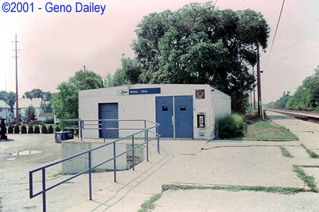 decorated with an updated decor and had digital display boards on each end of the car telling you where the bathroom and cafe car were located. The trip to Elyria was short, as I said before, only just over a half hour but like most all Amtrak trips I've taken in the past, it was a decent trip nonetheless. In the photo to the right, you'll see the Amtrak Station in Elyria, nothing more than a prefabricated garden shed, its very small and only consists of a waiting room, and 2 bathrooms. The station isn't staffed so if you need Amtrak info, there is a pay phone outside. I found out that a group of local railfans take care of the building for Elyria, which is nice. This station is served by the Pennsylvanian as well as the Lake Shore Limited and is located around 30 miles west of Cleveland. Shortly after I took this slide, I proceeded to head to Best Buy, although I've never been to this area before, so I had to do some exploring in order to get to the Midway Mall (where Best Buy is located).