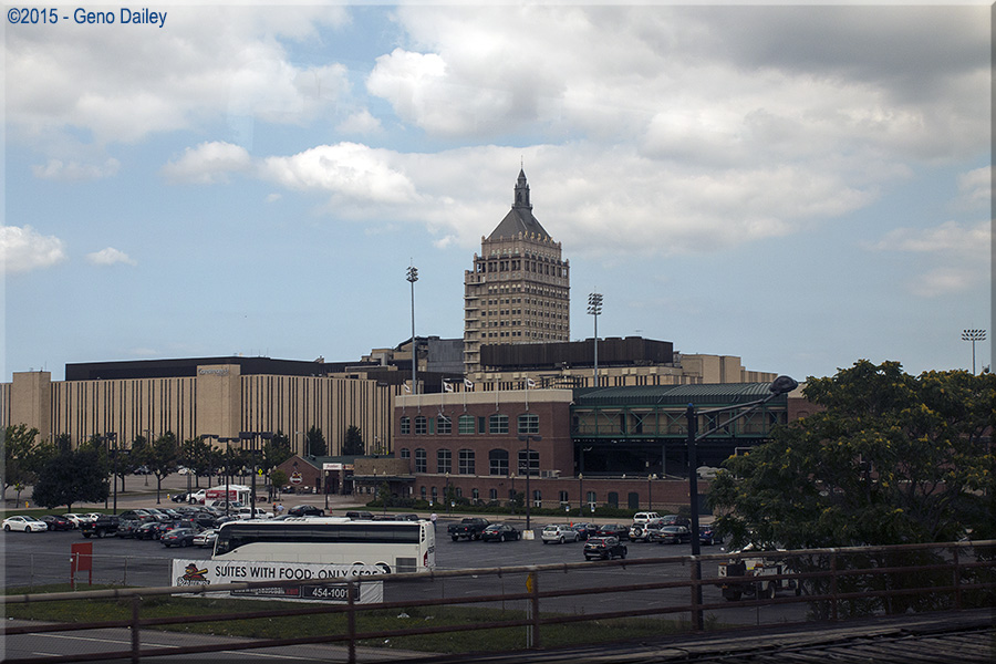The building in the foreground is Frontier Field, home of the Rochester Red Wings AAA Professional Baseball team. |