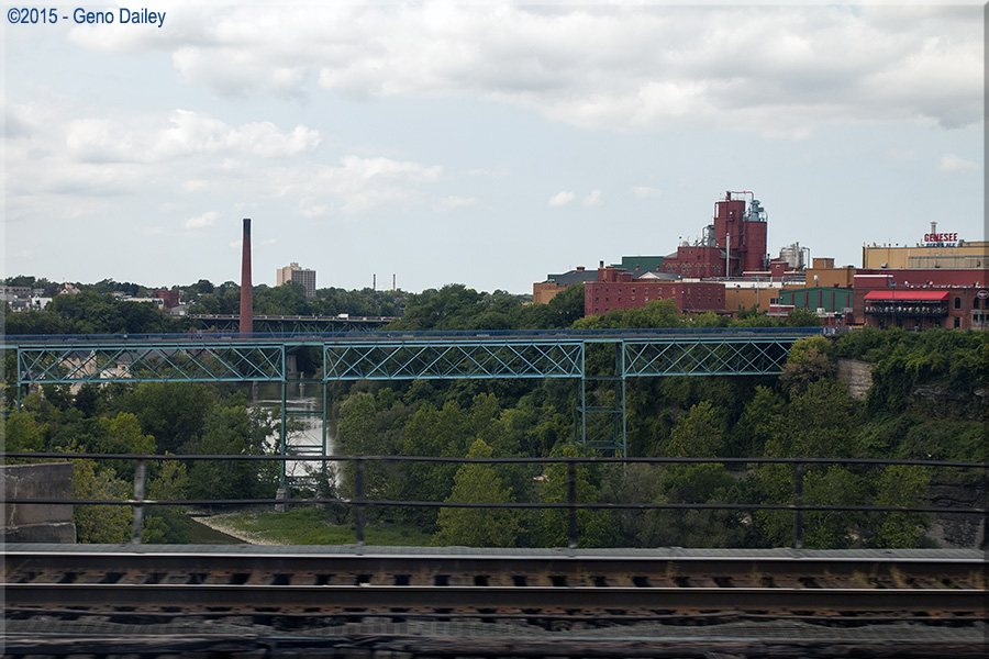 Crossing over the mighty Genesee River at an area known as the High Falls (they're just to the front of the bridge we're going over, out of view), we pass