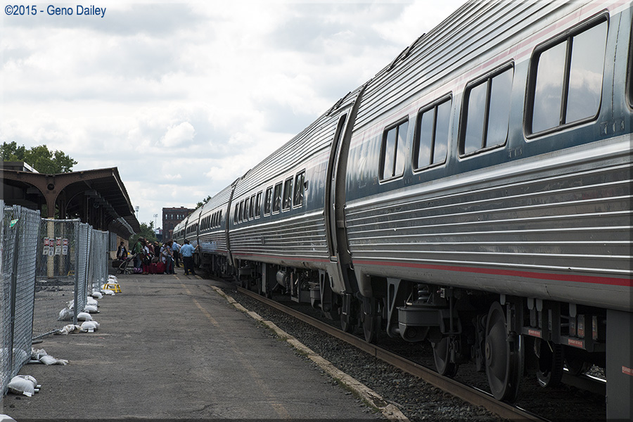Now having just arrived at the Syracuse-New York State Fair station stop, here is Train #64, heading to New York.