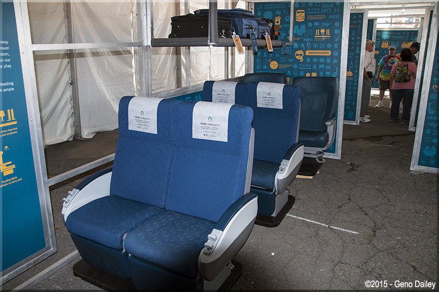 The first section of the display showcases Amtrak's Coach and Business Class seating. Just a regular coach seat on Amtrak is like riding