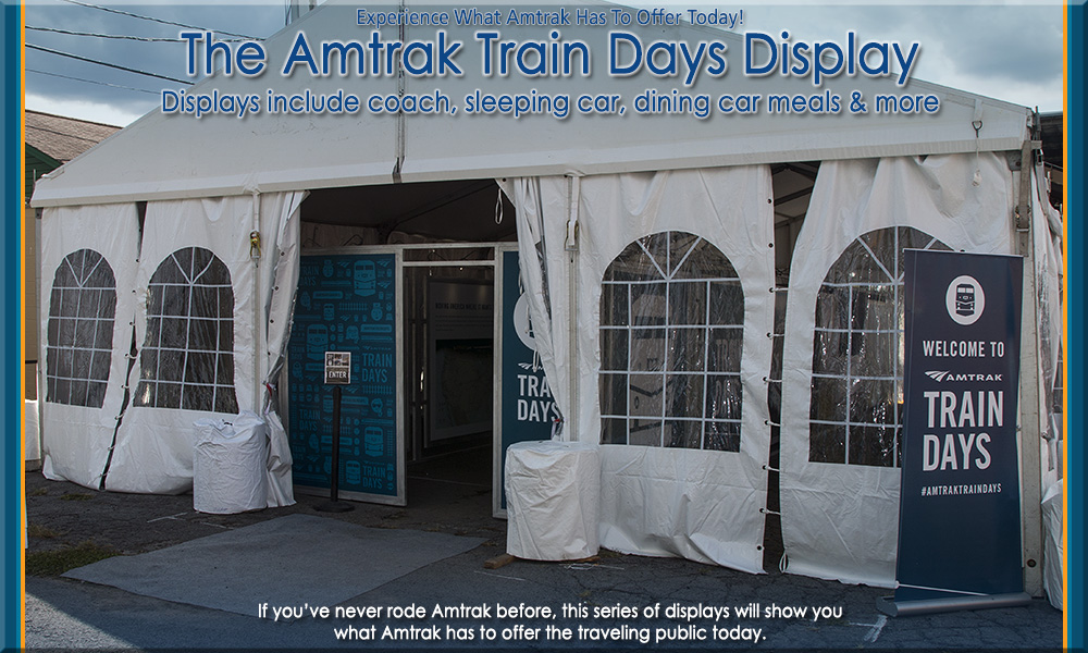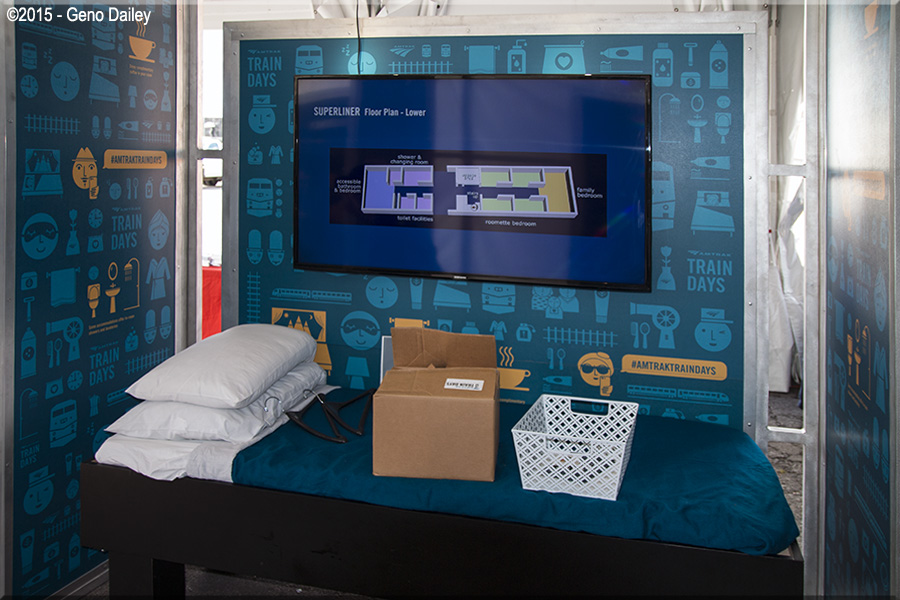 Let's say you've thought about taking the train for a trip next year and you've never rode Amtrak before. So you start scouring the internet, looking for information, reviews and photos among other things, trying to figure out how to plan your trip. Maybe you've contacted Amtrak, or maybe you've read mine and/or other travelers travelogues. You may even know someone who has rode the train before and has told you about their experience. What you really want is to simply experience what it's like to be on the train, sorta like playing a video game at a big box retail store before forking over $75.00 for it! Well Amtrak has you totally covered with the Amtrak Train Days events. The displays shown here give you an excellent idea of what train travel is all about today.
