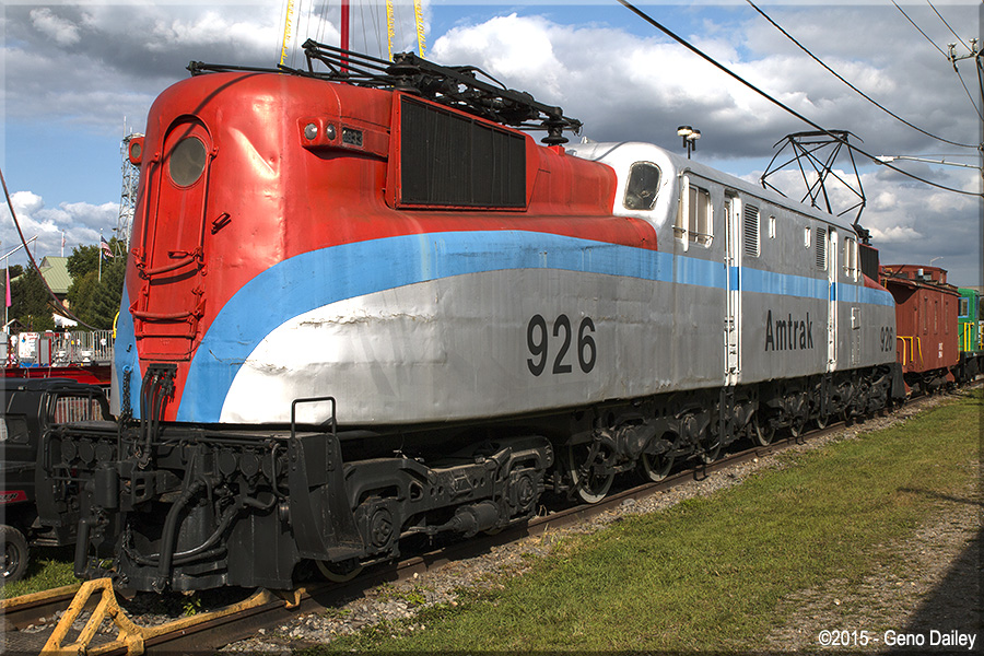 And finally, the signature piece of equipment on display here, GG-1 Electric #926 painted up for Amtrak. This unit began its career on the Pennsylvania