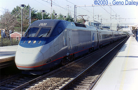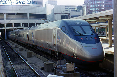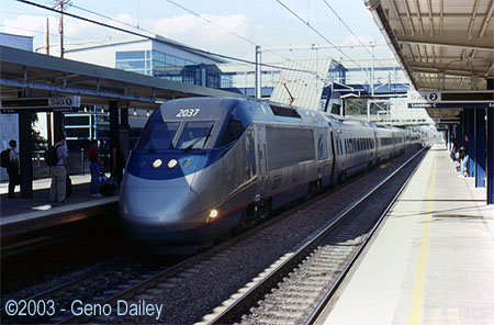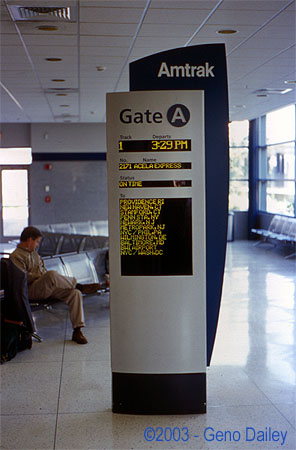 ![]() Regional Train #137 from Boston was the first to arrive when I got here today. Today's train had AEM-7AC #918 for power. ![]() An MBTA Commuter Train being "pushed" as these trains operate in Push-Pull mode on the Corridor. ![]() Amtrak Regional Train #172 with AEM-7 #947 for power makes its brief stop. ![]() Inside the station are these kiosks that display the info for the next train that will be arriving at the station, very modern looking and easy to read. ![]() At 3:20pm, Acela Express Train #2158 arrives with Power Car #2010 on the lead, #2015 was the trailer. ![]() Acela Express Train #2171, this time with Power Car #2037 on the lead, picks up passengers on its way to Washington, D.C. ![]() Another MBTA Commuter Train. Some of these trains only bypass the station with others making regular stops here. ![]() Regional Train #175 arrives with AEM-7 #951 for power at 3:53pm. ![]() Regional Train #174 now arrives with AEM-7AC #928 on the lead. ![]() At 4:28pm Acela Express Train #2173 lead by Power Car #2020 would be the last train I would photograph here today as the sun was getting low in the sky causing some harsh shadows. ![]() At 5:05pm, back at South Station, Acela Express #2175 sits at the station awaiting its departure a bit later with Power Car #2005 leading. |
