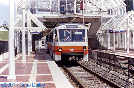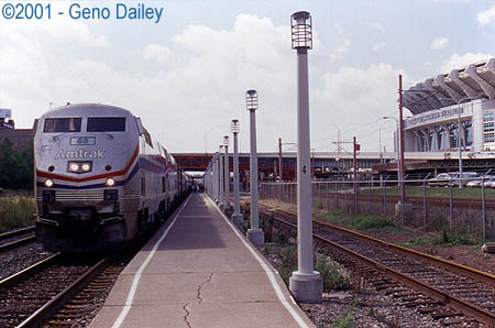 When I arrived in Cleveland, we were about 28 minutes late. The itinerary that I put together did allow me to be late to a certain point but didn't leave much room for error. I got off the train at 1:39pm and had exactly 4 minutes to photograph my train, seen in the photo to the left, then get over to the RTA station and catch the RTA Blue Train to Tower City, where I would catch the Red Train to Brookpark Road near Berea. Let me first say why I wanted to take this trip in the first place: First, I had to see Cleveland since I've never been here before, second, I needed an excuse to ride Amtrak again, and third, no matter how cheezy this sounds, I had to go to Best Buy again!!! (I've been living in Sandusky for almost 4 months now and they don't have Best Buy, BUMMER!!!) To get to Best Buy here in Cleveland required me to take an RTA train down to Parma, Ohio, just outside Berea where I would then catch a connecting bus down Brookpark Road to Best Buy. For anyone who lives in Cleveland, you'll know where all these places are. Talk about perfect timing, right after I photographed my train, I literally ran up to the RTA platform about 300 feet or so from the Amtrak Station Platform where I got off the Pennsylvanian. I had to buy a ticket for the RTA train for $1.50 and shortly after buying the ticket, I stepped outside onto the platform and there it is, my train, the RTA Blue Train that would take me down to Tower City as shown in the photo to the right. Once I boarded the train, I showed my ticket to the operator and took a seat, a few minutes later, I arrived at Tower City, which is like the central hub for the RTA trains as all 3 lines, Red, Green, and Blue, stop there. I had to transfer to the Red Train, which came about 10 minutes later. Once I boarded the Red Train, I rode down to the Brookpark Road Station, which was about a 20 to 25 minute ride, partially paralleling the NS Chicago Line, yes, you can railfan on a transit train! There was just a handful of passengers on the train as it was early afternoon before the rush hour traffic, so to speak, would use these trains. I got off the train, and caught my bus just in time to get to Best Buy. I'll only say that I had exactly 12 minutes to get to Best Buy, buy what I want and catch the same bus on the way back. I ended up buying a Martina McBride CD that I wanted and then headed back out to the street to wait for the same bus on his return trip. I was at the bus stop no less than 2 minutes and there came the bus! Timing was everything on this trip!!! Anyways, I took the same bus, Route #98 back to the RTA station, and while I waited on the platform, this NS Eastbound passed by the station with C40-9W #9068 on the lead. Shortly after, my train would arrive and as I said before, this line as you can see in the photo to the left, parallels the Chicago Line, so you do have the chance of seeing some NS Freights while riding the train back to Downtown Cleveland. The train ran smoothly and provided me with some nice views of the tracks as we speed past at approximately 50mph. The trip lasted around 25 minutes and eventually we left the Chicago Line as the RTA line then enters some hilly territory before coming into Downtown Cleveland. As I said before, this was my first time riding these trains and was my first time visiting Cleveland, so was I in for a surprise as we came back into Cleveland! The views from these trains of the Cleveland Skyline were just amazing, to see those photos and the rest of this travelogue, click in the table below...