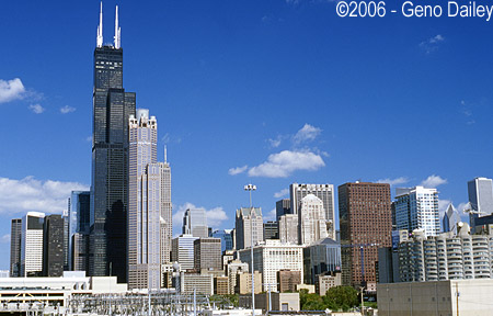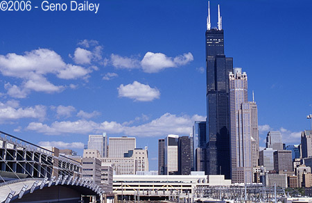 ![]() A second view of the Sears Tower. I'm totally hooked on using a polarizer filter for scenes like this, it really brings out the incredible ability of the film I used (Kodak Professional E100VS Pro 35mm Slide Film) to show the oversaturated, nearly "postcard quality" colors! Word of advice, get a polarizer filter! It's totally worth the $27.00 I spent for mine! |