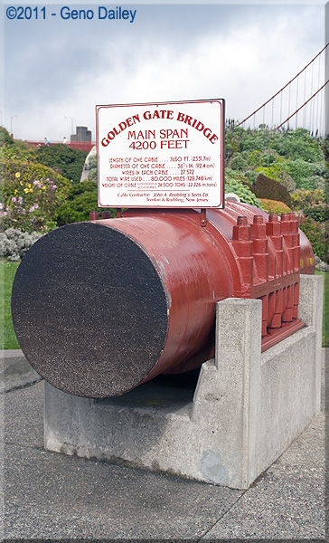 LEFT: A sample of the main cable that spans the length of the bridge. The bridge is 4200 feet long!