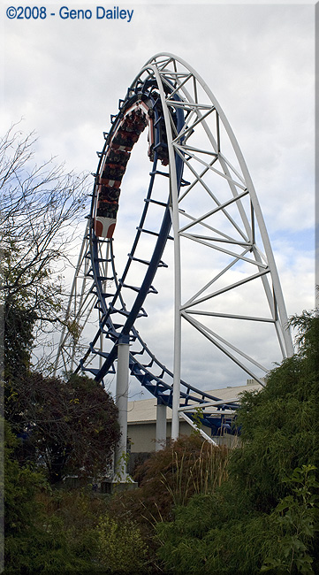 | LEFT: Mantis' first inversion, one huge loop! RIGHT: A view at the bottom of the first drop on Mantis! |