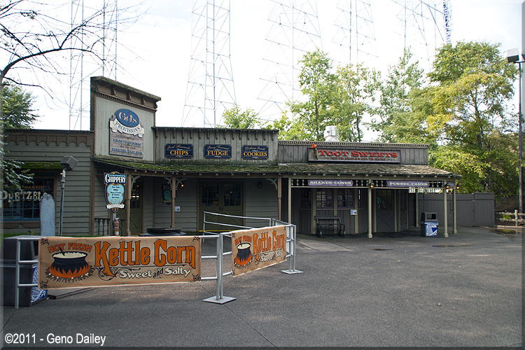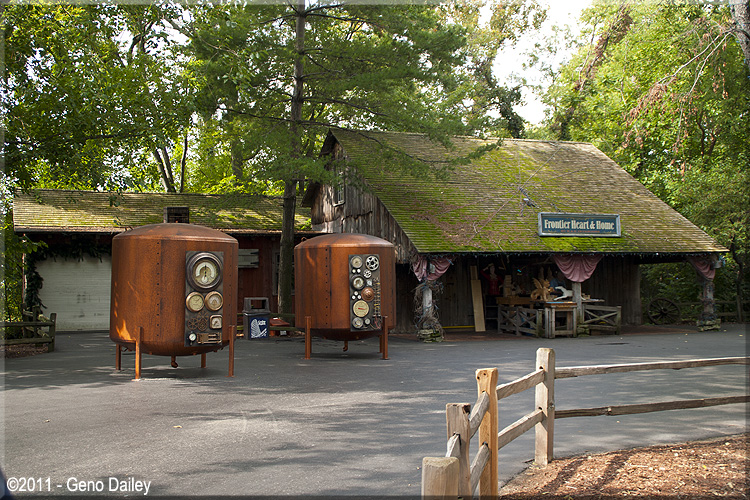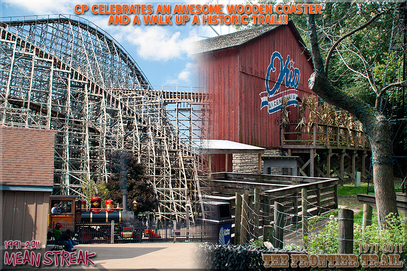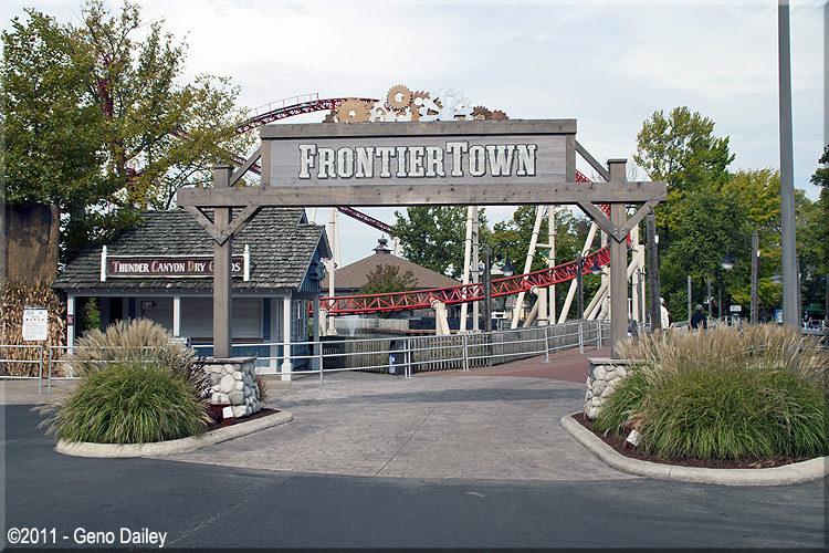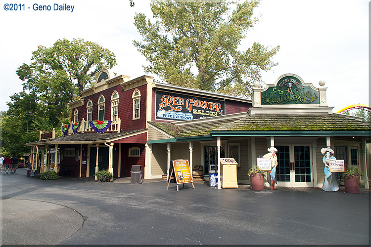 | The Frontier Trail opened in 1971 and features a trip back to the old west as you meander through the heavily wooded walkway that features lots of great representations of buildings from that era. The trail features restaurants, shops, and other historic displays as you make your way to Frontiertown in the back of the park where you'll find great coasters like Mean Streak and Maverick! Included here are photos of what you'll see as you walk up this historic trail! Enjoy... |