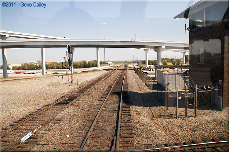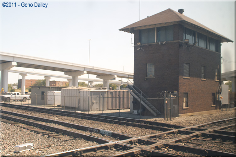 | Crossing the old Texas & Pacific line at the diamond and tower known as Tower 55. |
