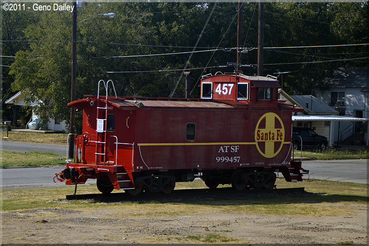 | Former Santa Fe Caboose #999457 on display next to the Amtrak Station in Cleburn, TX. |