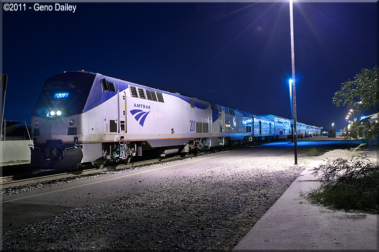 | During an extended station stop in Tucson, AZ, the Sunset Limited takes a break after being refueled and serviced. |