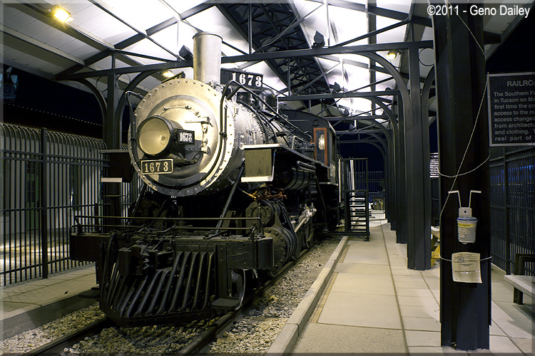 | Southern Pacific 2-6-0 #1673 on display at the Tucson Amtrak Station. |