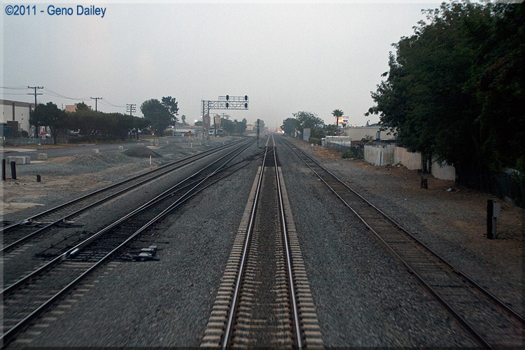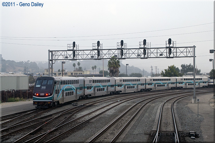 | Passing a Metrolink commuter train just before arriving at Union Station. |