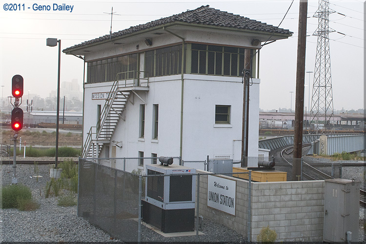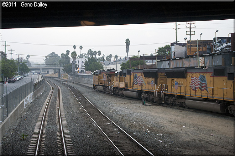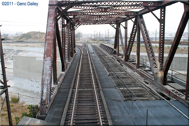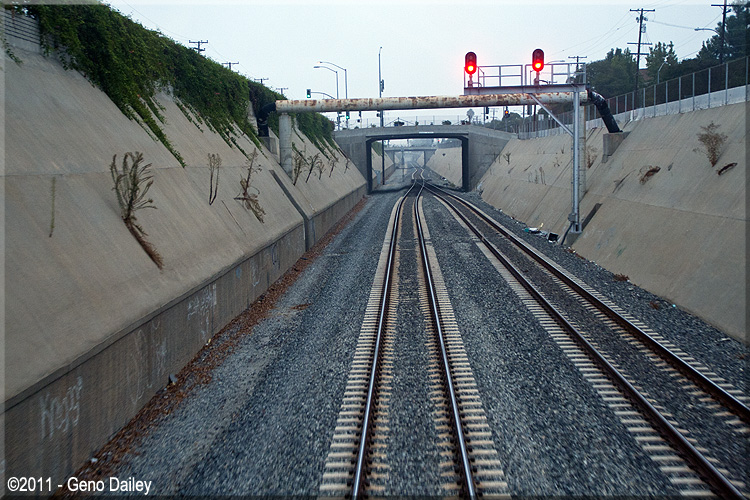| Crossing over the Los Angeles River, heading for Los Angeles Union Passenger Terminal! |
