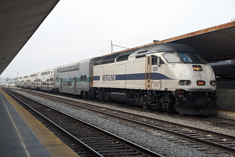 | Another Metrolink commuter train on an adjoining track at Union Station. |