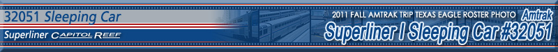 Superliner I Sleeping Cars were originally to be delivered with names (being named after National Parks) but the names were never actually applied to the cars (2 did ultimately get names but not after National Parks). I have included the car's originally planned name (Capitol Reef) here in the masthead above the photo for reference.