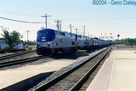 ![]() Finally, Amtrak Train #6 - The California Zephyr arriving at Galesburg on September 28th, 2004. |