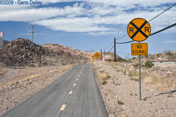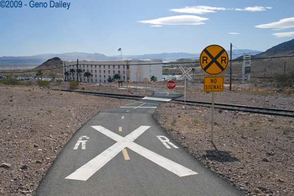 | Walking on the River Mountain Trail near Railroad Pass approaching one of the road crossings. |