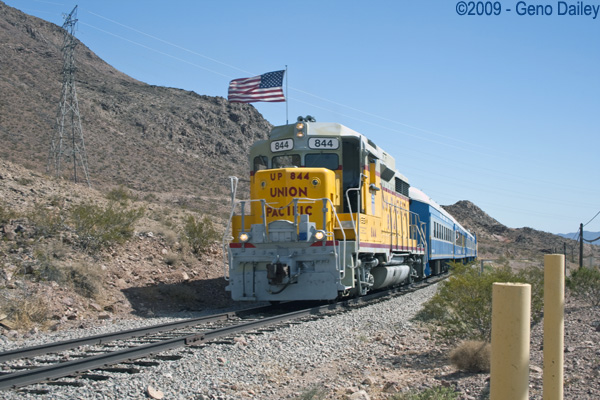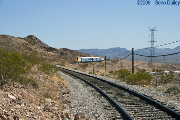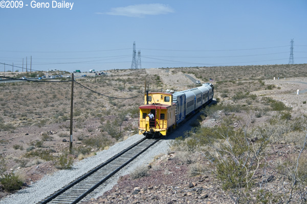 | The train approaching the end of the line where it will then head back to Boulder City. |