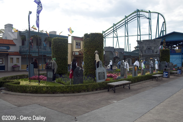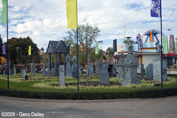 | One thing you will see plenty of on the midway and throughout the park are lots and lots of tombstones & skeletons! |