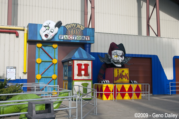 | Happy Jack's Toy Factory, a new haunted house located in the building that houses the Disaster Transport coaster. |