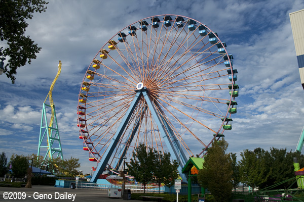 | LEFT: Top Thrill Dragster, CP's tallest coaster at 420ft. You will go REALLY FAST on this ride! 0-120mph in 4 seconds, it don't get any faster than that!!! RIGHT: Demon Drop, a freefall ride located at the front of the park, operated its 27th and final season at Cedar Point in 2009. This ride will be heading to Dorney Park (a sister-park to CP) in Allentown, PA in 2010. |