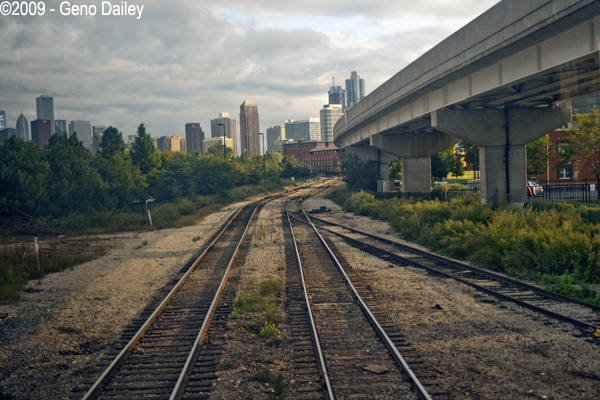 | Crossing the Metra Rock Island District line that runs between Chicago's LaSalle Street Station and Joliet. |