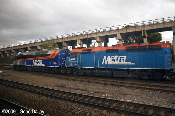 | Two Metra Locomotives that we passed when we made our turn onto the BNSF main before arrival at Union Station. |