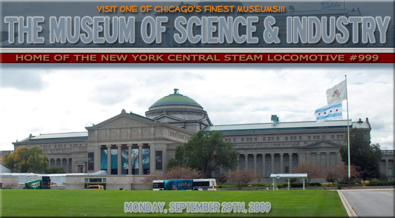 | After storing my luggage at Union Station, I proceeded out to Canal Street where I would walk over to the corner of Jackson and Franklin Streets to catch the CTA (Chicago Transit Authority) bus #X28 which would take me to 56th Street and South Hyde Park Avenue which is right near the museum. After boarding the bus, I pulled out my iPod and listened to some music from the band Chicago as well as some other stuff. The bus ride was about a 1/2 hour long and the fare was $2.25. Upon arrival at the museum, I called my Dad back in New York and told him about this place. The entire museum grounds are longer than a football field! I would come to find out, you might need to spend more than one day here if you want to experience everything this incredible museum has to offer. You can tour the Chicago Burlington & Quincy Railroad's famous Pioneer Zephyr train! There is also an enormous HO Scale model train layout situated behind the famous New York Central 4-4-0 Steamer #999 which set a land speed record in 1893 of 112.5mph near Buffalo! This was my big reason for coming here, to see this locomotive since I'm from Western New York! Situated "above" that steamer is a United Airlines Boeing 727-100 jet that you can tour. I had a nice chat with a United Airlines pilot who happened to fly that very plane when it was in service with United! There is so much to see here that as I said before, you might need more than one day. Below are some of the highlights from this amazing museum! Enjoy!!! |